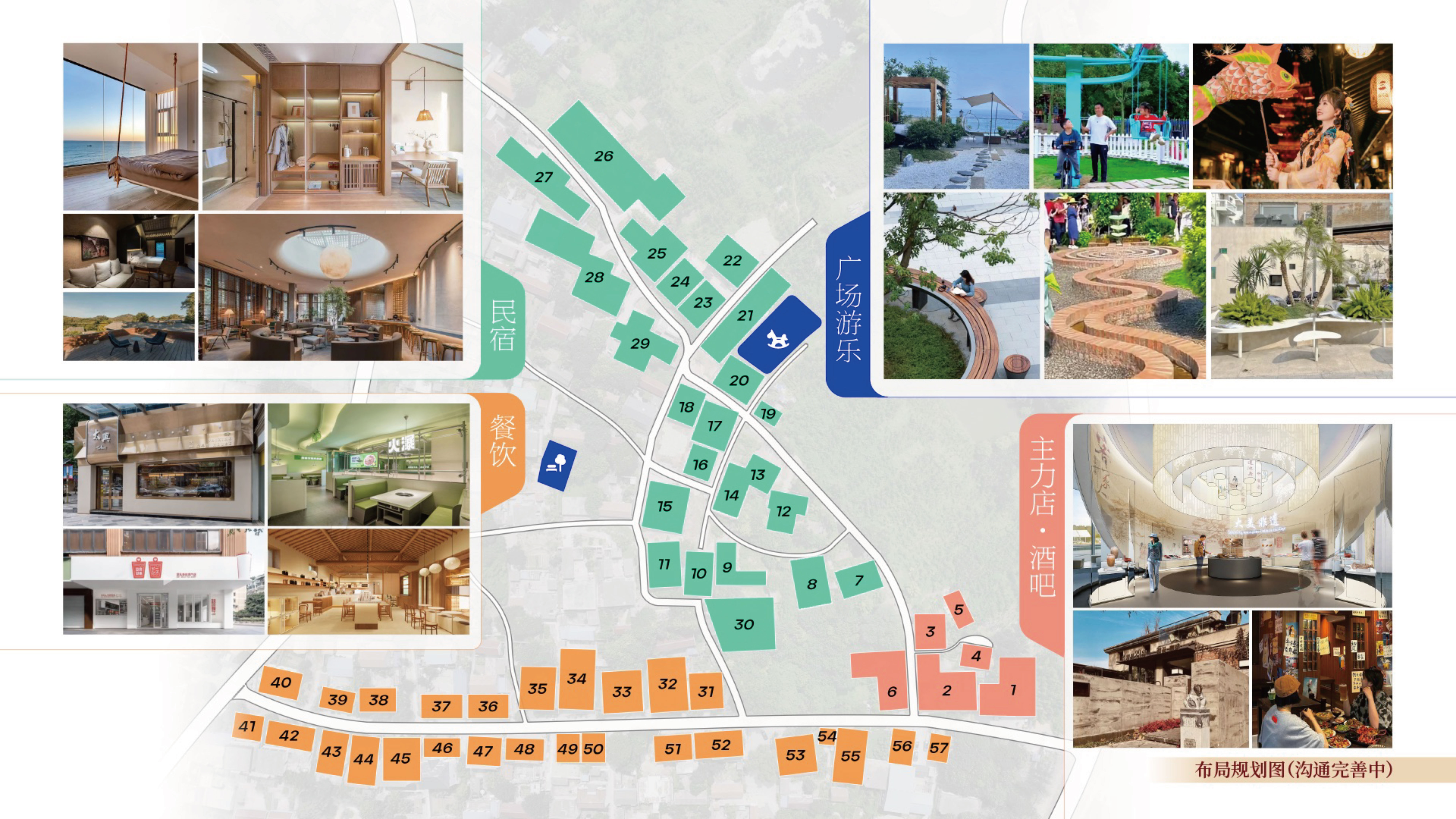 以沟南村新码头为 核心景观展示区 ,向东延伸布局精品民宿群,向西拓展商业服务区,形成“民宿体验+商业配套”双翼齐飞格局。通过环岛景观慢行道串联各功能节点,构建“移步换景、处处是景”的全域旅游空间体系。