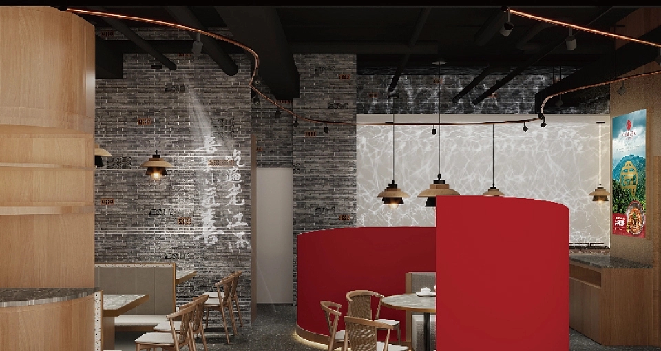 空间效果打造是 “小匠喜” 传递文化的重要载体,整体设计深度融入赣文化和匠人精神元素。设计团队提炼江西地标建筑的经典形式,如徽派建筑的马头墙、客家围屋的线条感等,将其转化为空间中的装饰细节、隔断造型或灯光轮廓,并与品牌产品巧妙结合,形成独特的品牌符号 —— 例如在菜品展示区融入地标建筑元素,让消费者在视觉上快速将空间与江西文化关联,强化品牌记忆点。