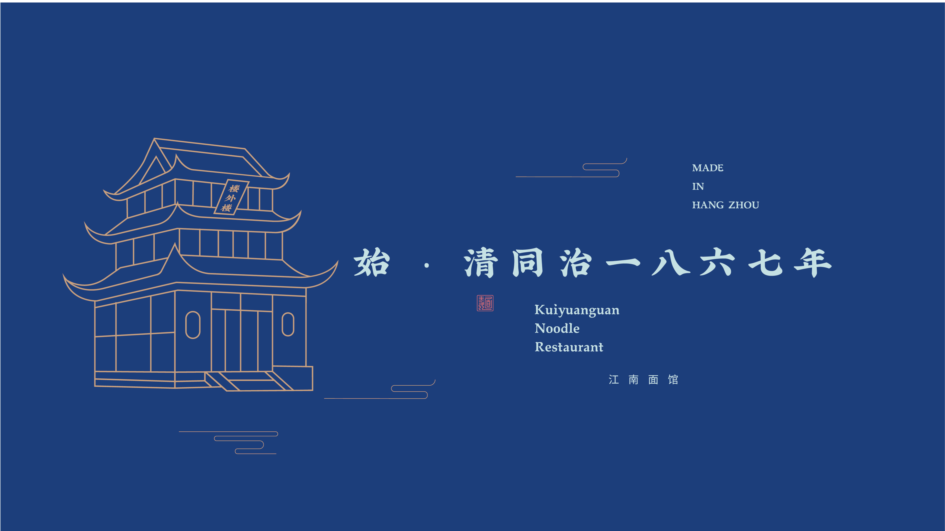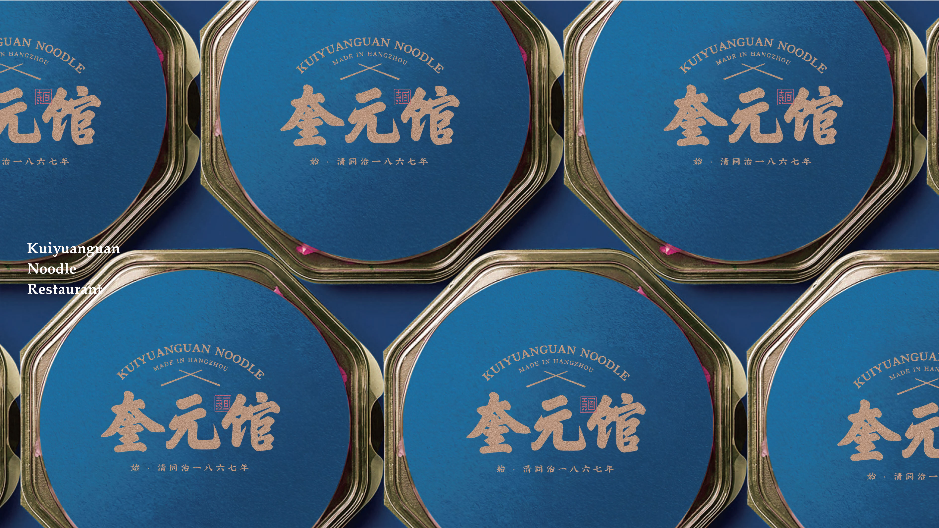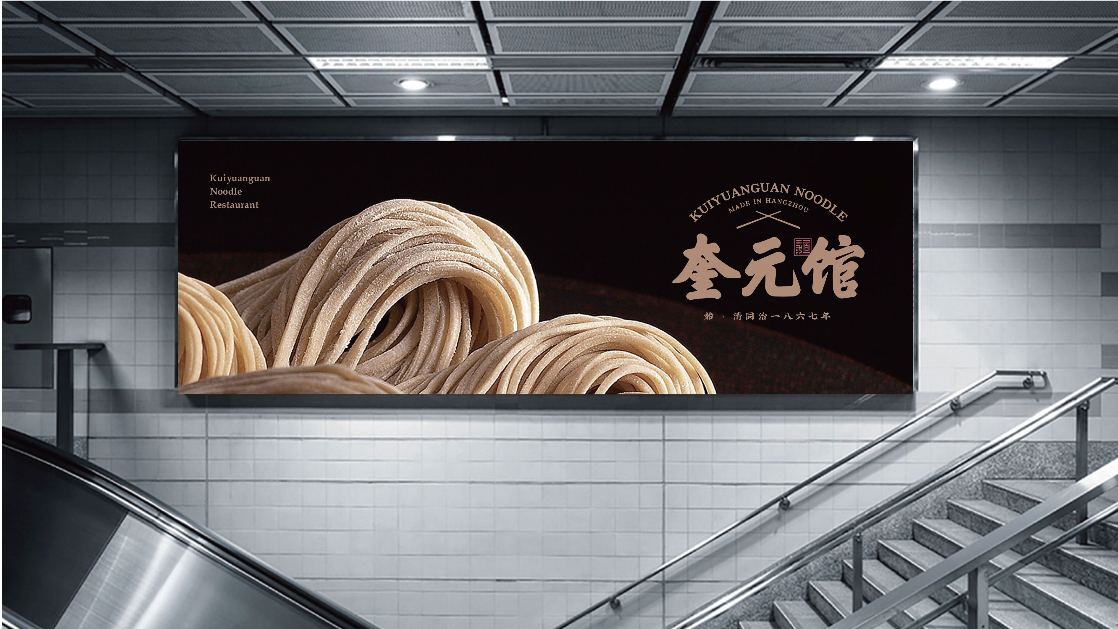 奎元馆品牌标识以 “百年面韵,笔墨传香” 为核心理念,融合江南文人书卷气与市井面馆烟火气,既显老字号厚重历史,又传递现代餐饮精致体验,诠释 “一碗面中见山河” 的东方美学。
