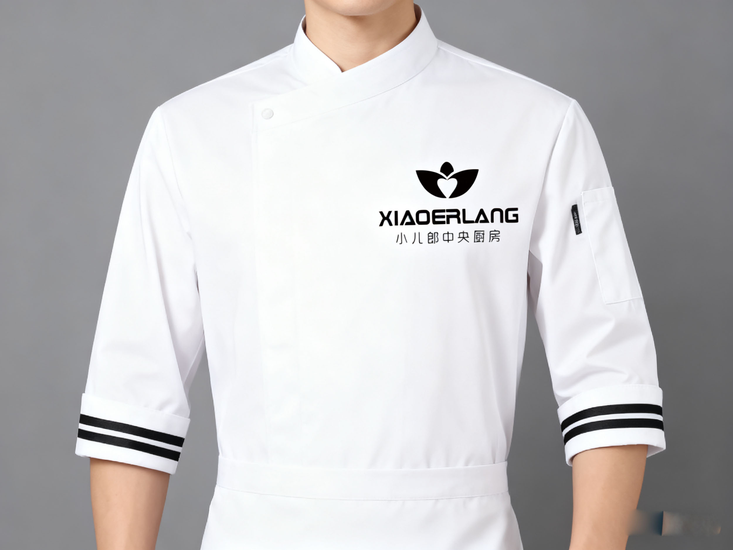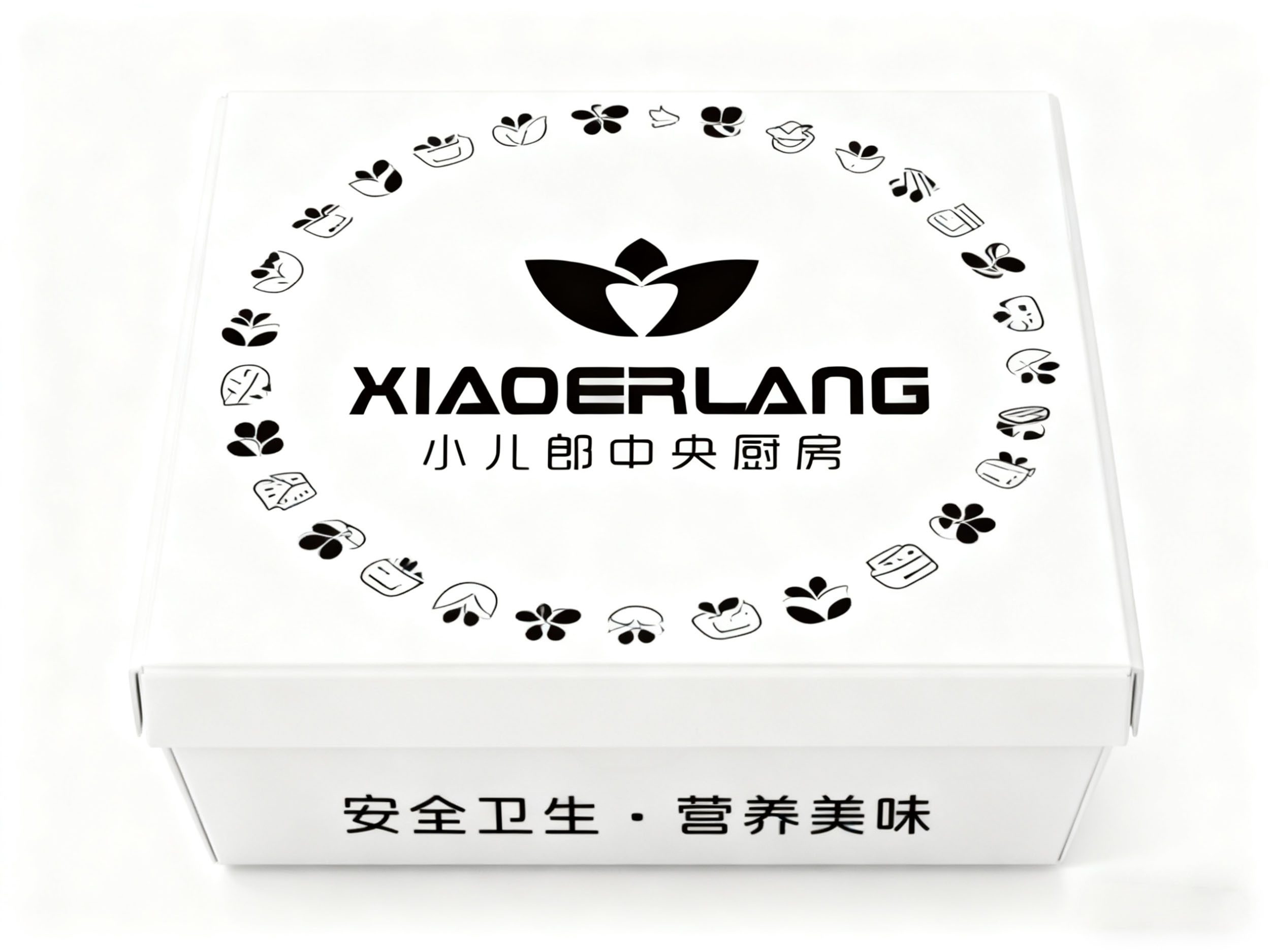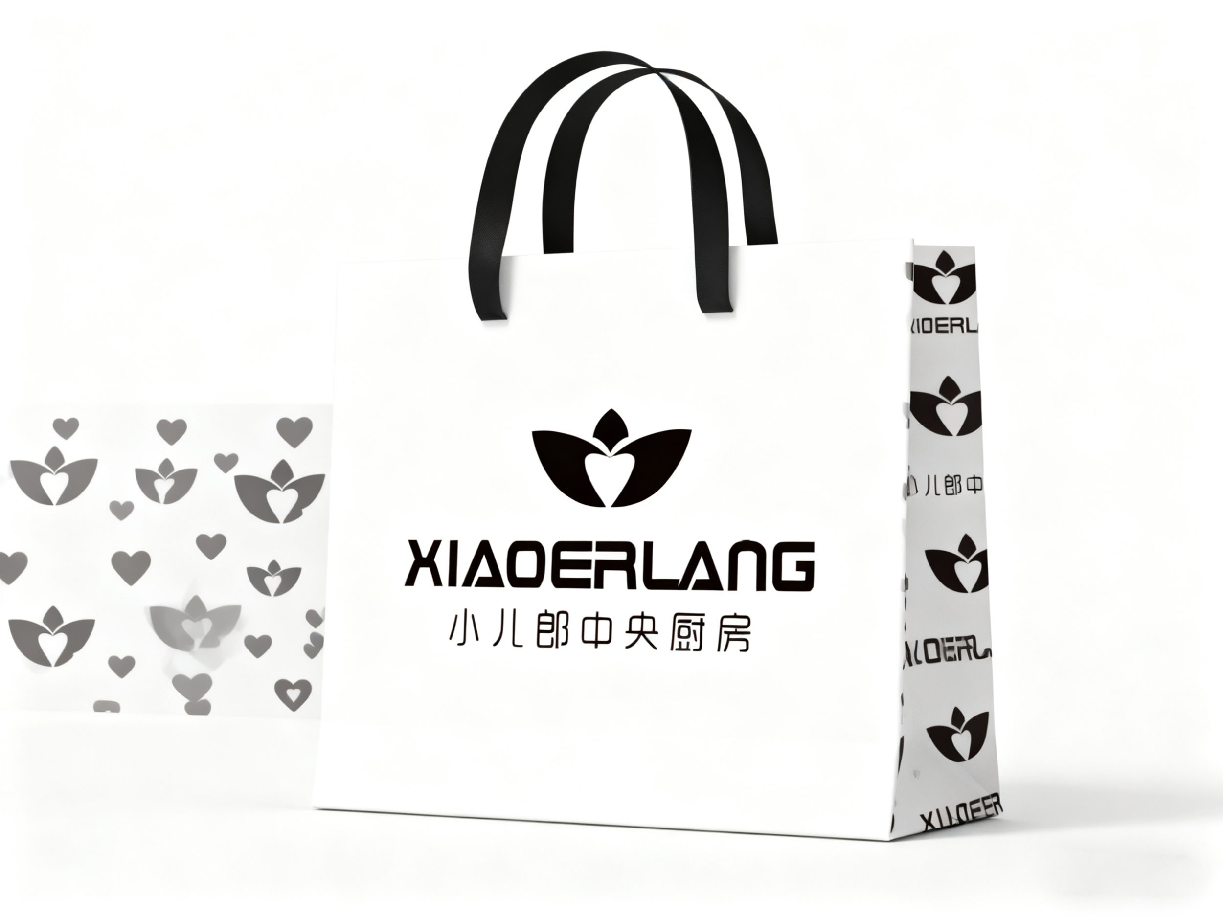 “XIAOERLANG” 的英文标识采用现代感强烈的字体设计,字母造型硬朗且富有识别性,展现出品牌的规范化与国际化运营特质。下方 “小儿郎中央厨房” 的中文书法字体,笔画圆润且富有亲和力,与上方图形的 “关爱” 意象形成呼应,传递出品牌 “专业厨房,温情守护” 的双重属性。