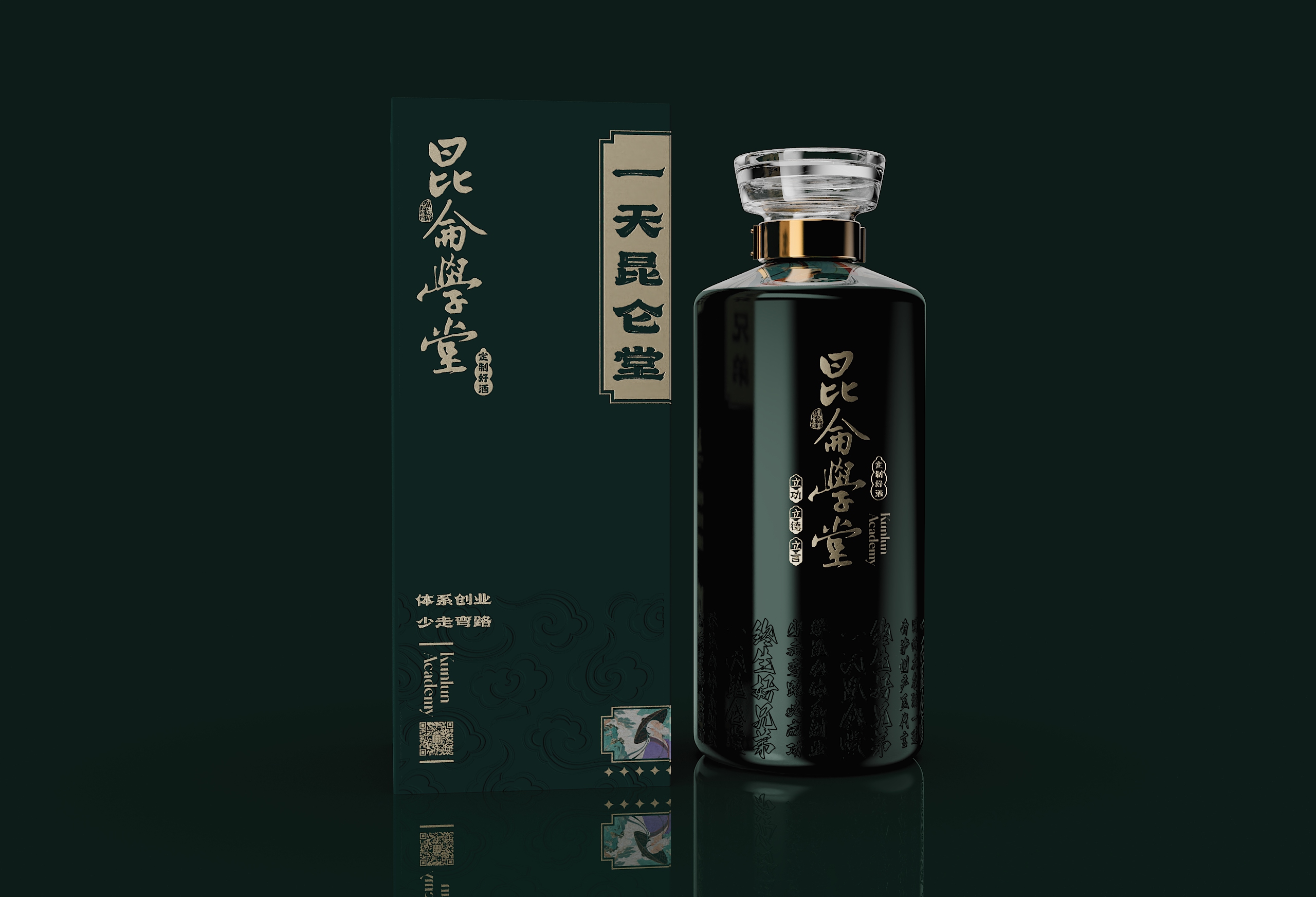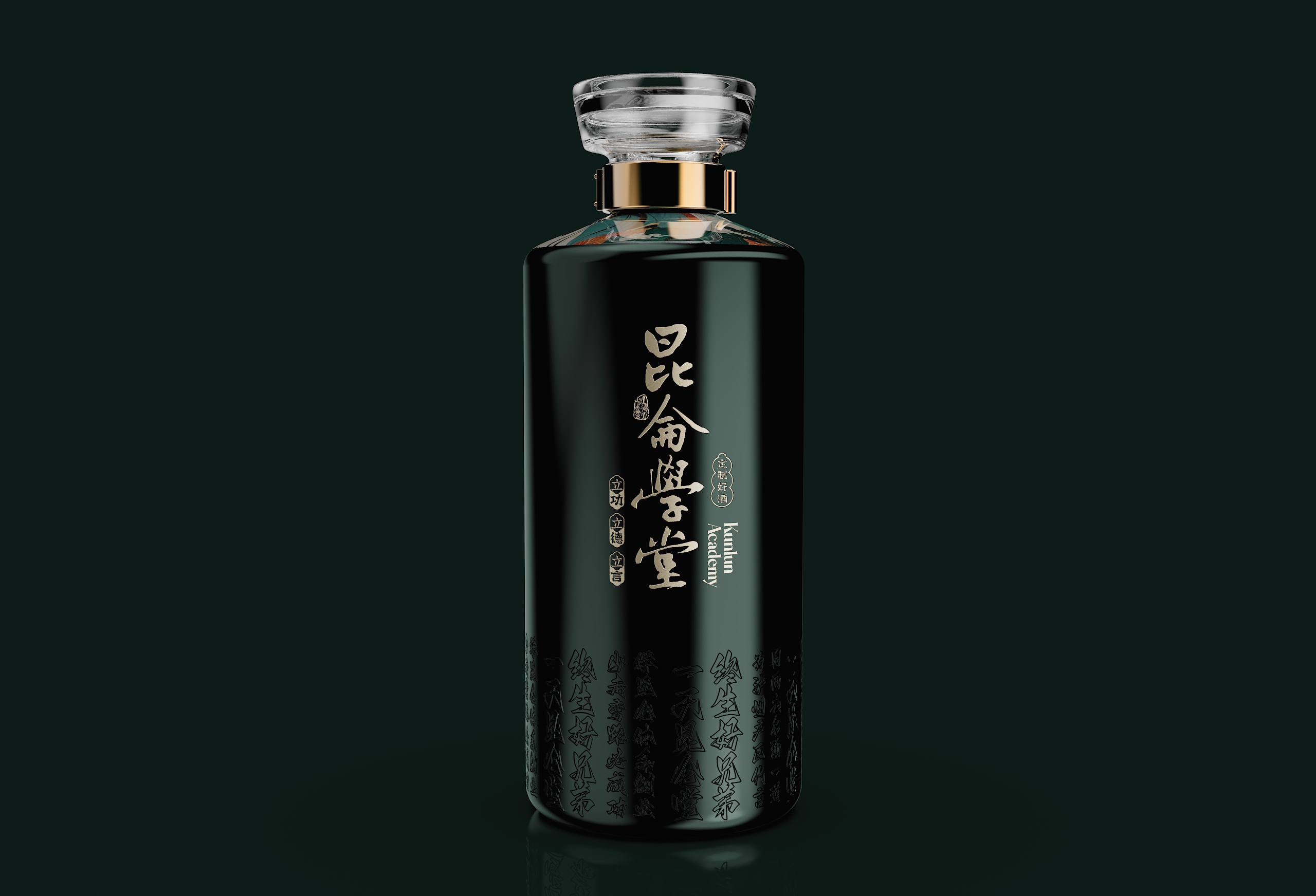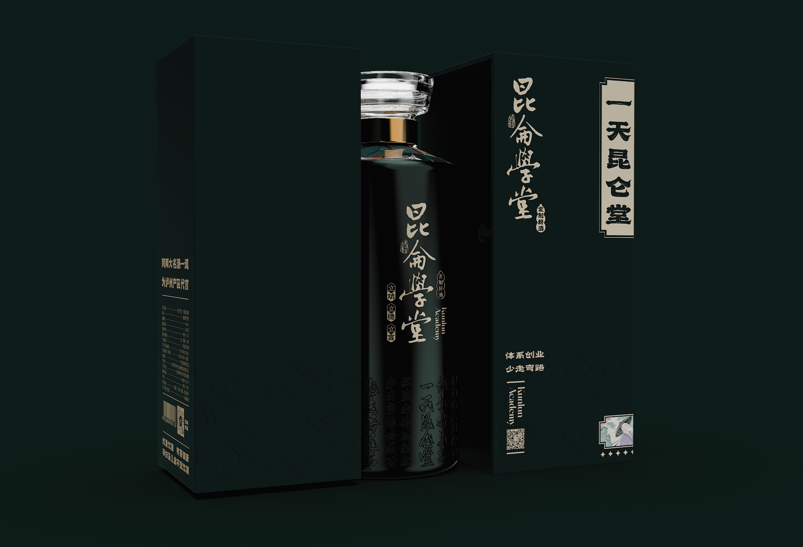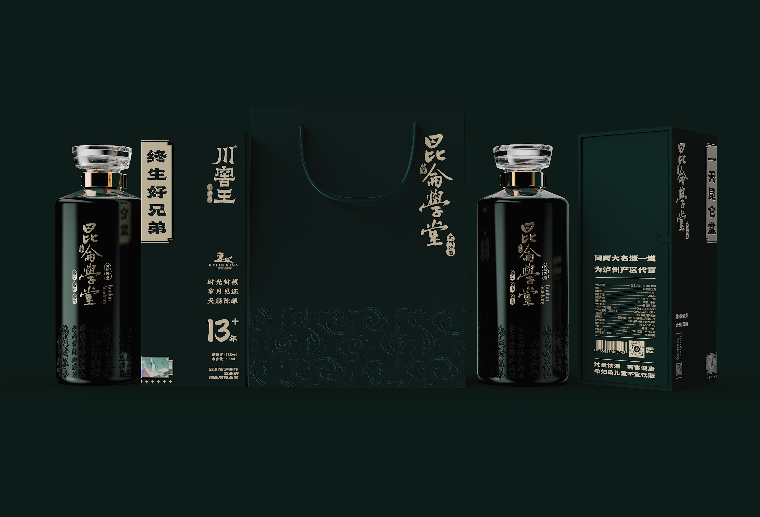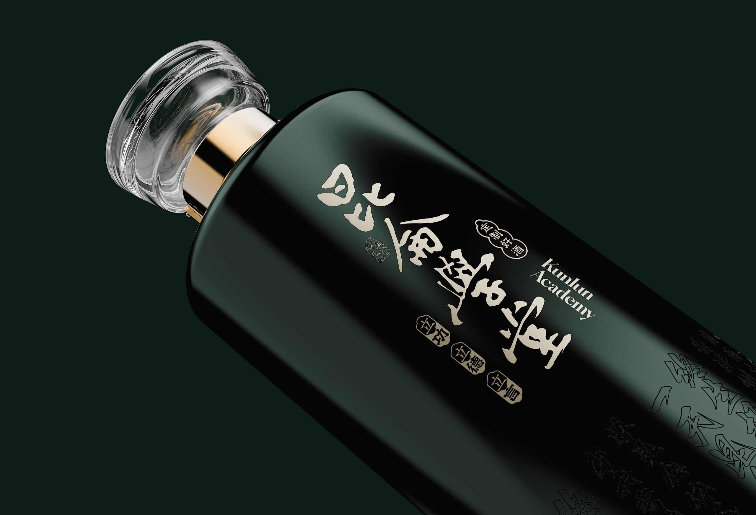 这款青瓶包装最终通过系统化的设计语言,完成了从“容器”到“礼器”的升华。当深青釉色与香槟金在光影中交织,当传统纹样与现代工艺在瓶身共鸣,它展现的不仅是包装设计的创新突破,更是中国文化在设计语境下的当代生命力。