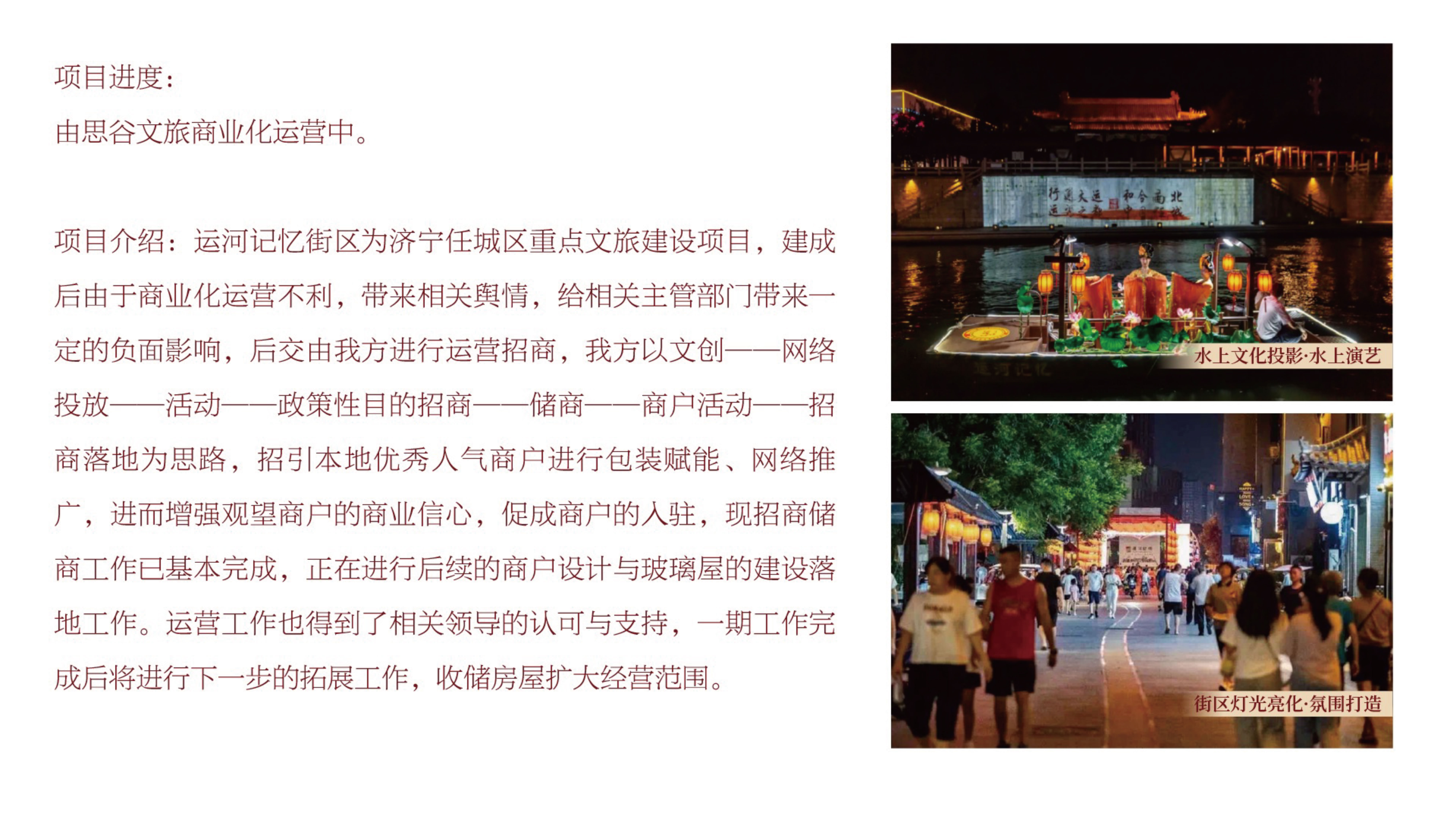 运河记忆街区作为济宁任城区重点文旅项目,承载着传承运河文化、焕发老城活力的重要使命。然而项目建成初期,因商业化运营策略不当,导致商户入驻率低、客流量不足,引发社会负面评价,使这一优质文旅资产面临严峻挑战。