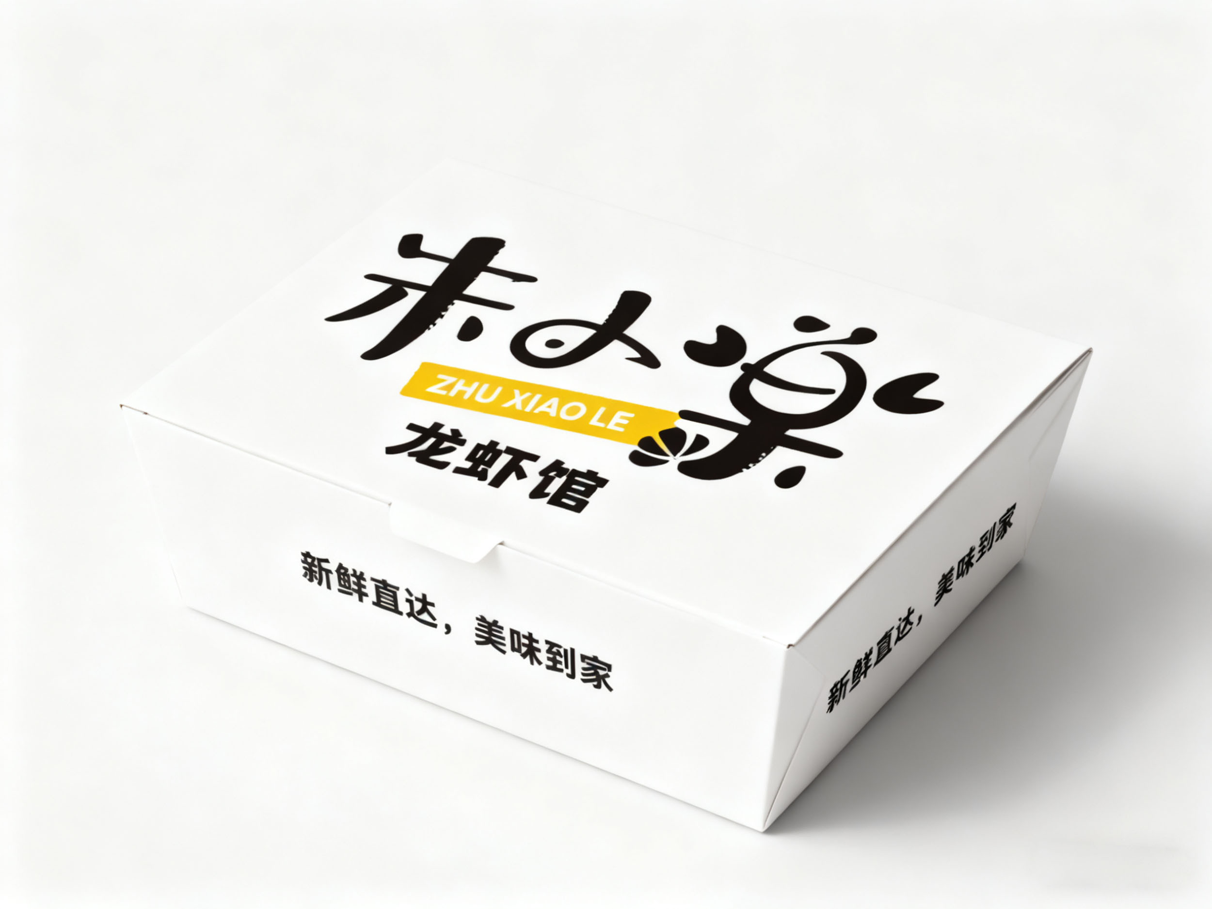 黄色条带中的 “ZHU XIAO LE” 拼音标识与黑色 “龙虾馆” 文字,形成清晰的信息分层:拼音强化品牌名称的识别效率,“龙虾馆” 则直接界定品类属性,让消费者快速建立品牌认知。黄色的选择明亮且富有食欲感,为整体黑白为主的视觉注入一抹活力,仿佛是龙虾美味的 “点睛之笔”,进一步提升品牌的视觉吸引力。