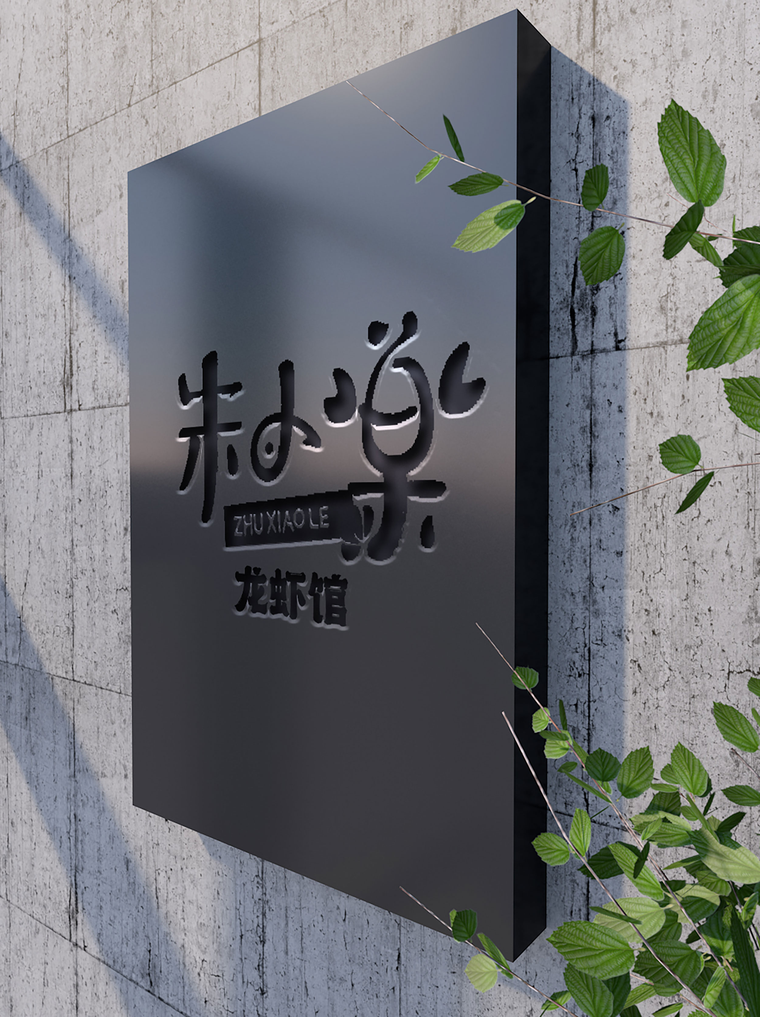“朱小樂” 三字采用创意十足的字体设计,笔画灵动且富有卡通感,既传递出龙虾馆的活力与趣味,又暗含品牌 “以‘樂’为核,打造欢乐龙虾聚餐空间” 的定位。字体中融入的圆形、曲线元素,似龙虾的灵动形态,瞬间唤醒消费者对龙虾美味的联想,彰显出品牌对龙虾品类的专注与对欢乐氛围的营造。