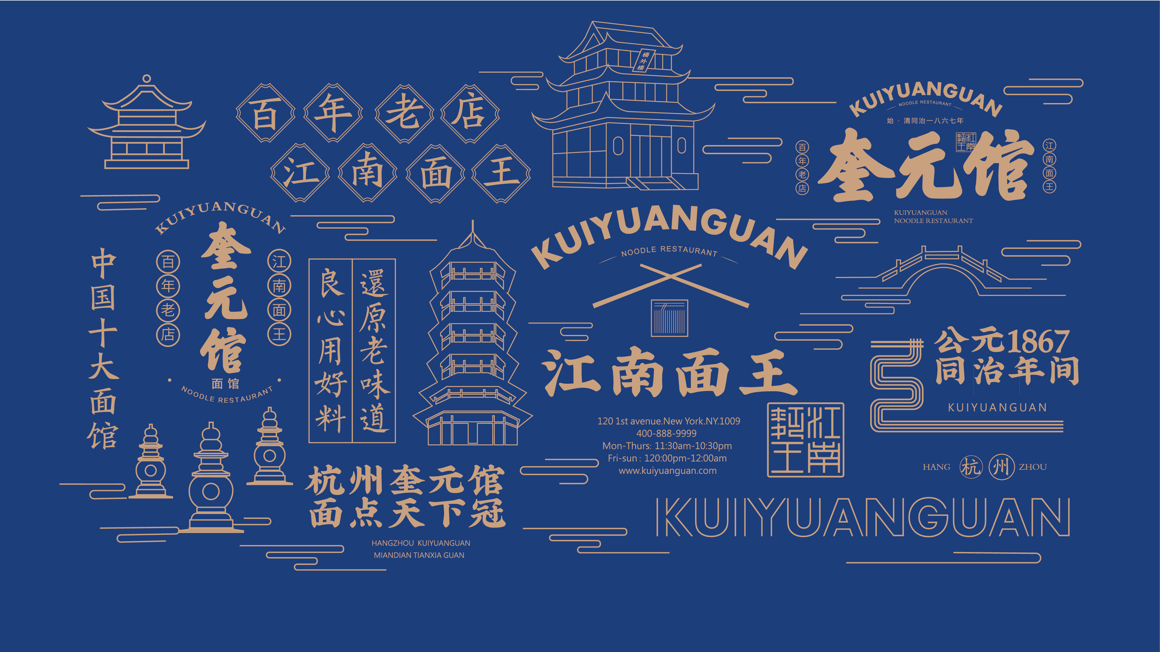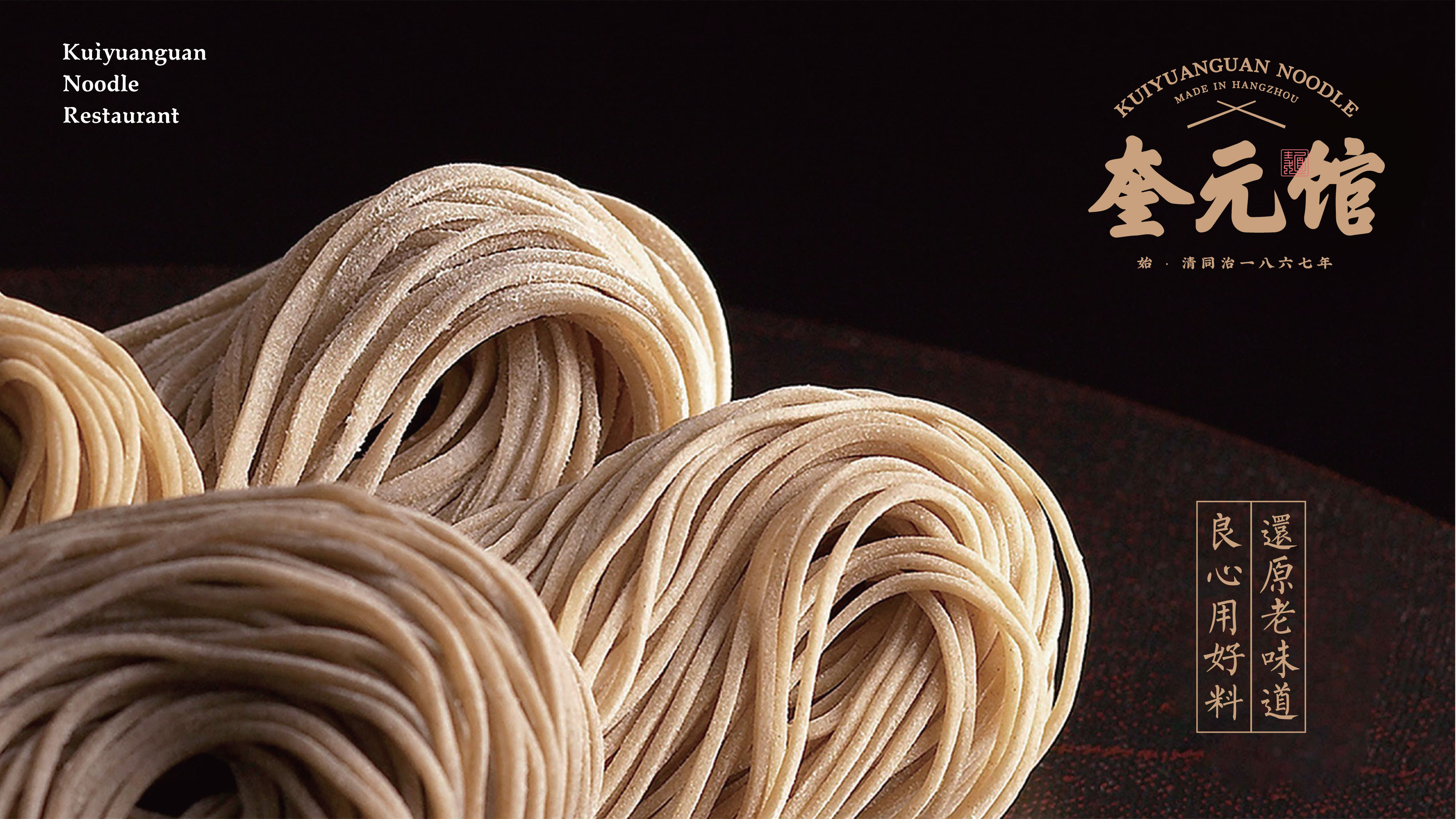奎元馆品牌标识以 “百年面韵,笔墨传香” 为核心理念,融合江南文人书卷气与市井面馆烟火气,既显老字号厚重历史,又传递现代餐饮精致体验,诠释 “一碗面中见山河” 的东方美学。