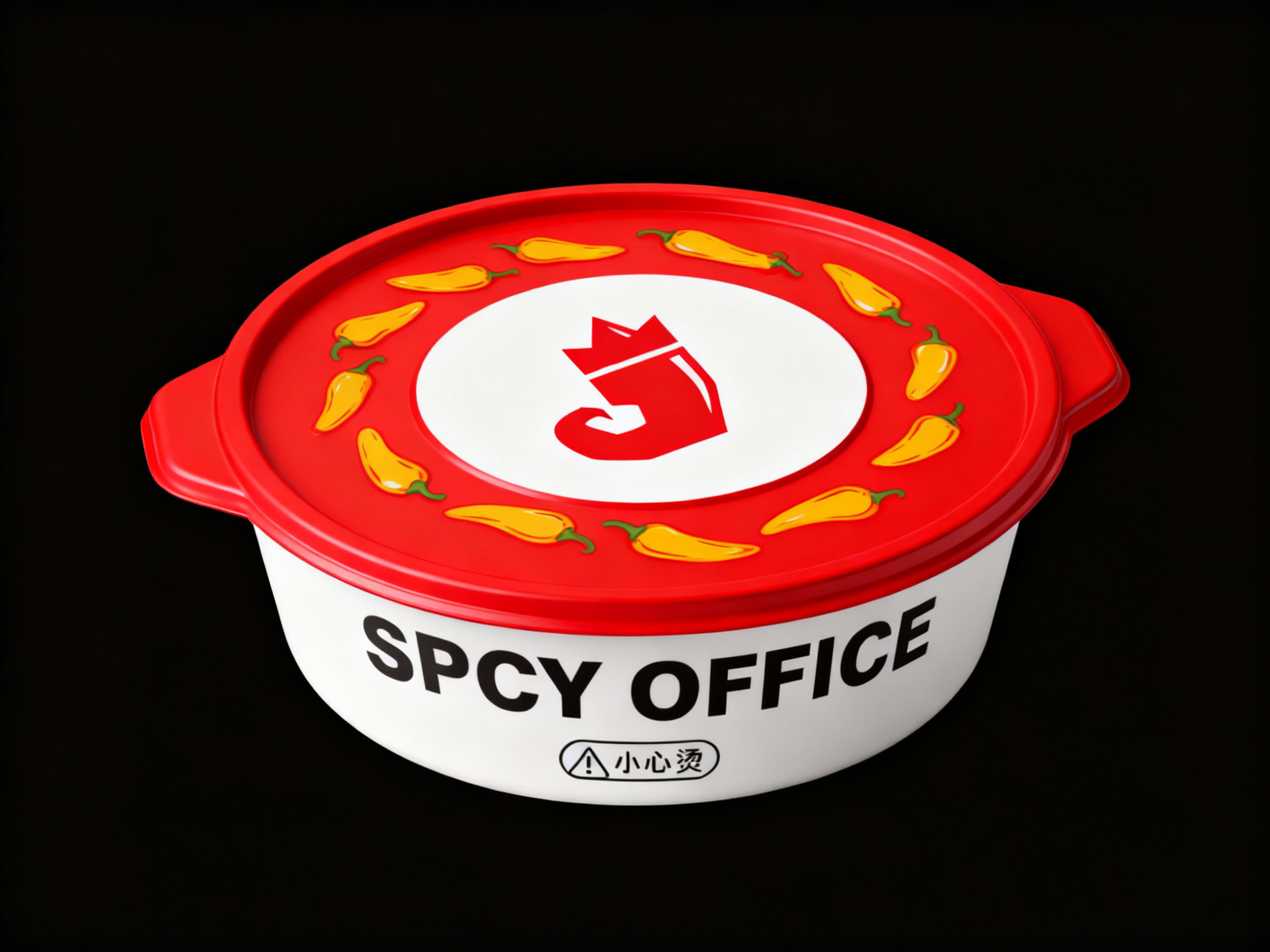 “麻辣办” 的黑色字体设计简洁大气,与红色图形形成强烈视觉对比,提升品牌名称的记忆点;下方的 “SPICY OFFICE” 英文标识与 “一个专研麻辣的机构” 标语,清晰传递出品牌的国际化视野与专业定位,让消费者直观感知到品牌在麻辣领域的专注与深度。整体版式层次分明,将品牌理念、品类属性与视觉符号高效整合,便于快速建立品牌认知。