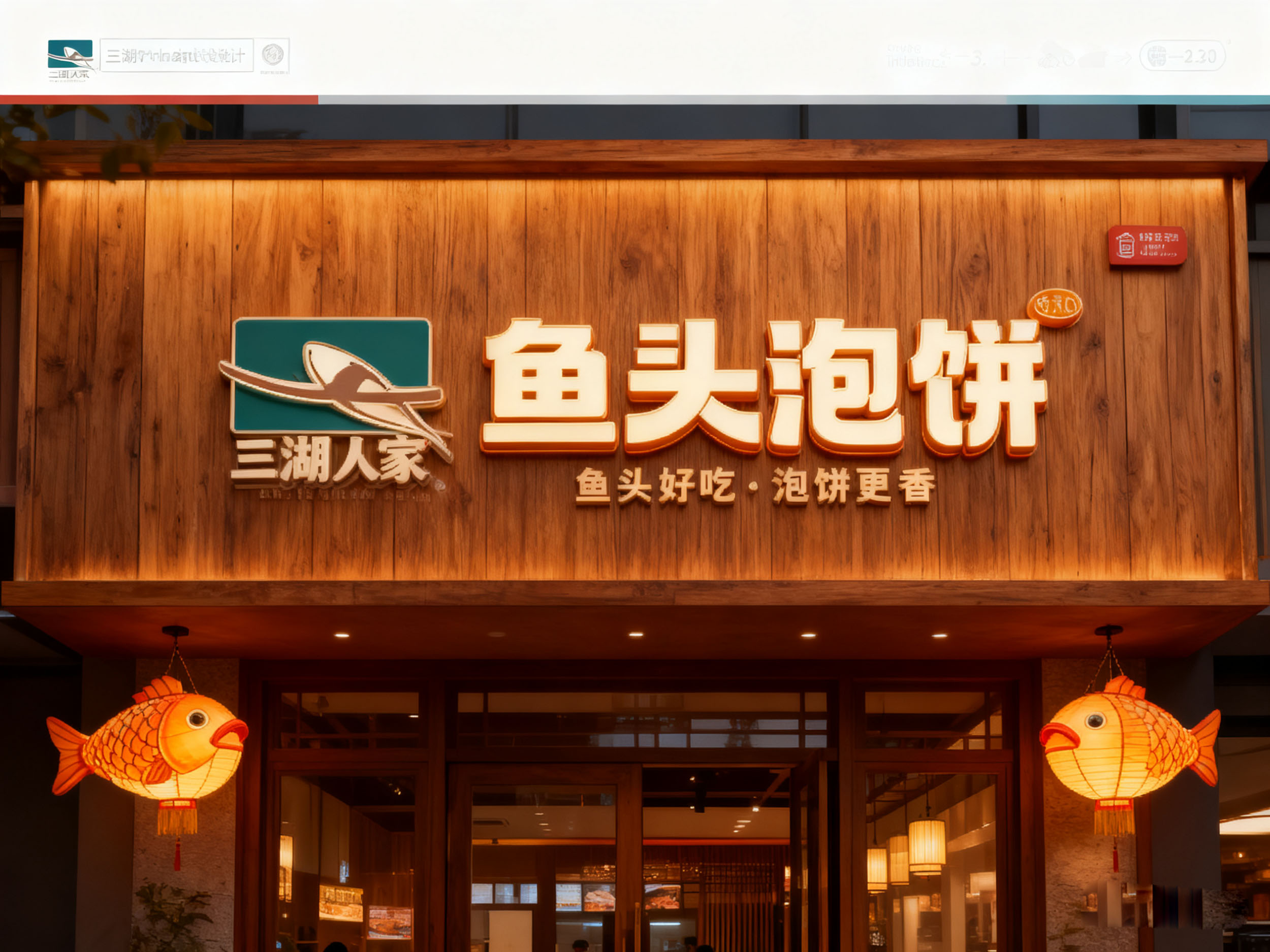 整体设计将菜品特色、食材属性与消费心理巧妙融合。鱼头图形的具象表达、清新色彩的质感传递、标语的食欲激发,共同传递出品牌 “以新鲜鱼头打造地道泡饼美味,让食客尽享湖鲜与面食融合的独特风味” 的核心价值。它不仅是品牌的视觉标识,更是一道 “视觉美食”,让消费者在看到 LOGO 的瞬间,便能感受到鱼头泡饼的鲜香气息,以及品牌对菜品品质与美味体验的双重追求。