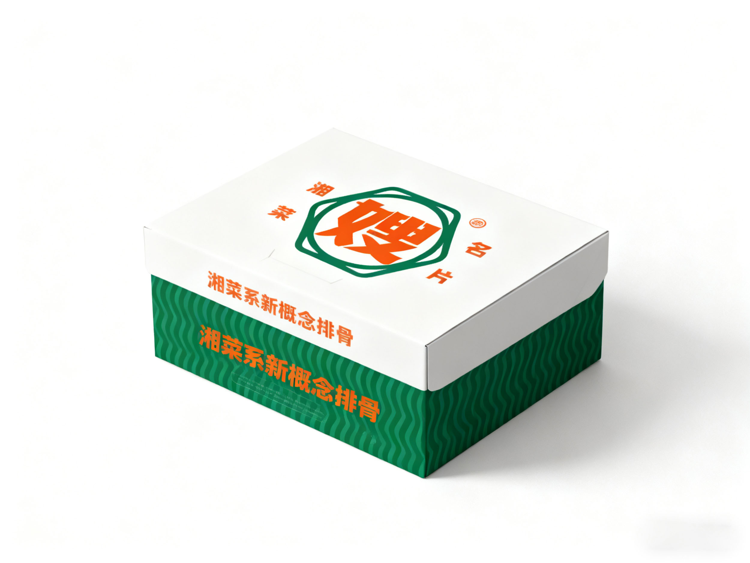 “湘菜 新名片” 的文字标识清晰界定品牌的地域属性与品质追求,让消费者直观感知到这是一个代表湘味新高度的餐饮品牌;“小厨嫂 辣炒排骨” 的分层文字,既强化品牌名称的记忆点,又明确核心菜品 “辣炒排骨”,精准传递出品牌的品类优势。整体版式层次分明,将地域文化、品类属性与品牌理念高效整合,便于快速建立品牌认知。
