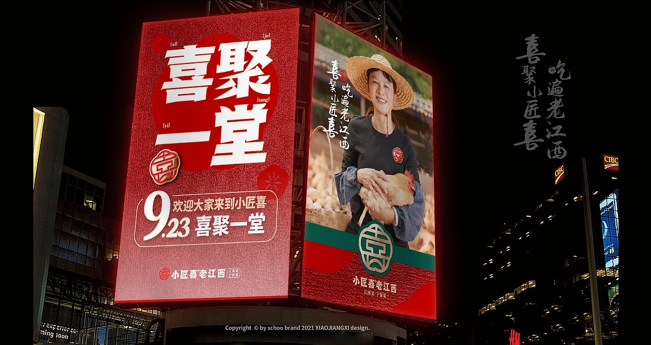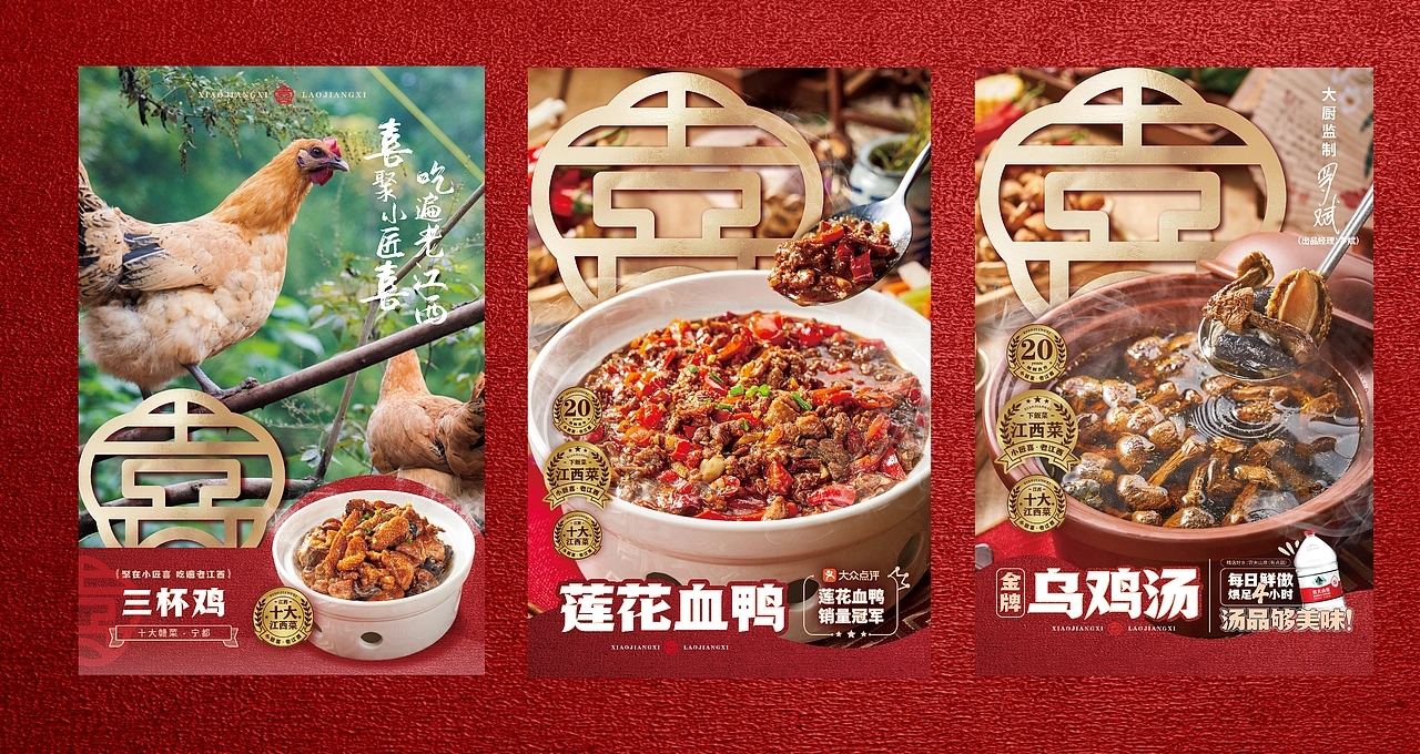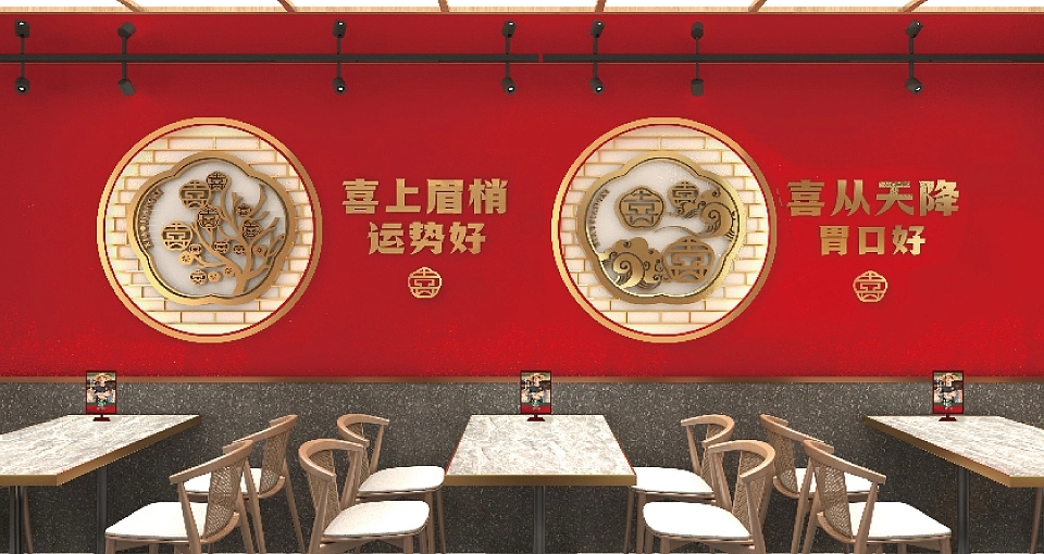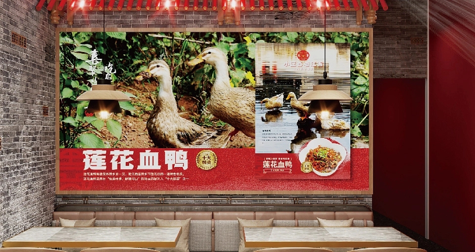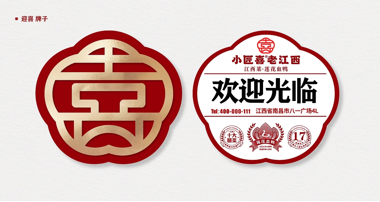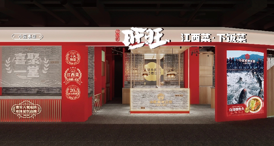 在品牌视觉架构上,小匠喜精准锚定三大核心方向:其一,深度融入赣文化与匠人精神元素,让每一处设计都承载江西的文化记忆与手作温度;其二,提炼江西地标建筑的独特形制与赣菜产品的经典呈现符号,将滕王阁的飞檐、赣江的波澜等元素化作视觉语言,让食客一眼便能感知江西韵味;其三,打造富有沉浸式体验感的空间场景,让用餐环境成为赣文化的延伸载体。