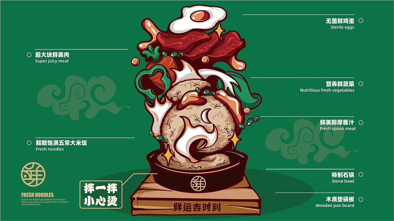 在产品策略上,我们并未追随当下快餐市场常见的 “单品爆款” 打法。结合 “小面鲜生” 的价格定位与品牌调性 —— 既区别于大众平价快餐,又致力于为消费者提供高性价比的品质餐食,我们明确了 “双主打招牌爆品” 的核心策略:小面与石锅拌饭地位平等,二者分别承载着消费者对传统风味与创新口感的需求,共同构成品牌的产品核心。这种定位既能凸显品牌在产品研发上的用心与实力,也能更好地满足不同消费群体的口味偏好,进一步强化 “小面鲜生” 的独特性与品质感。