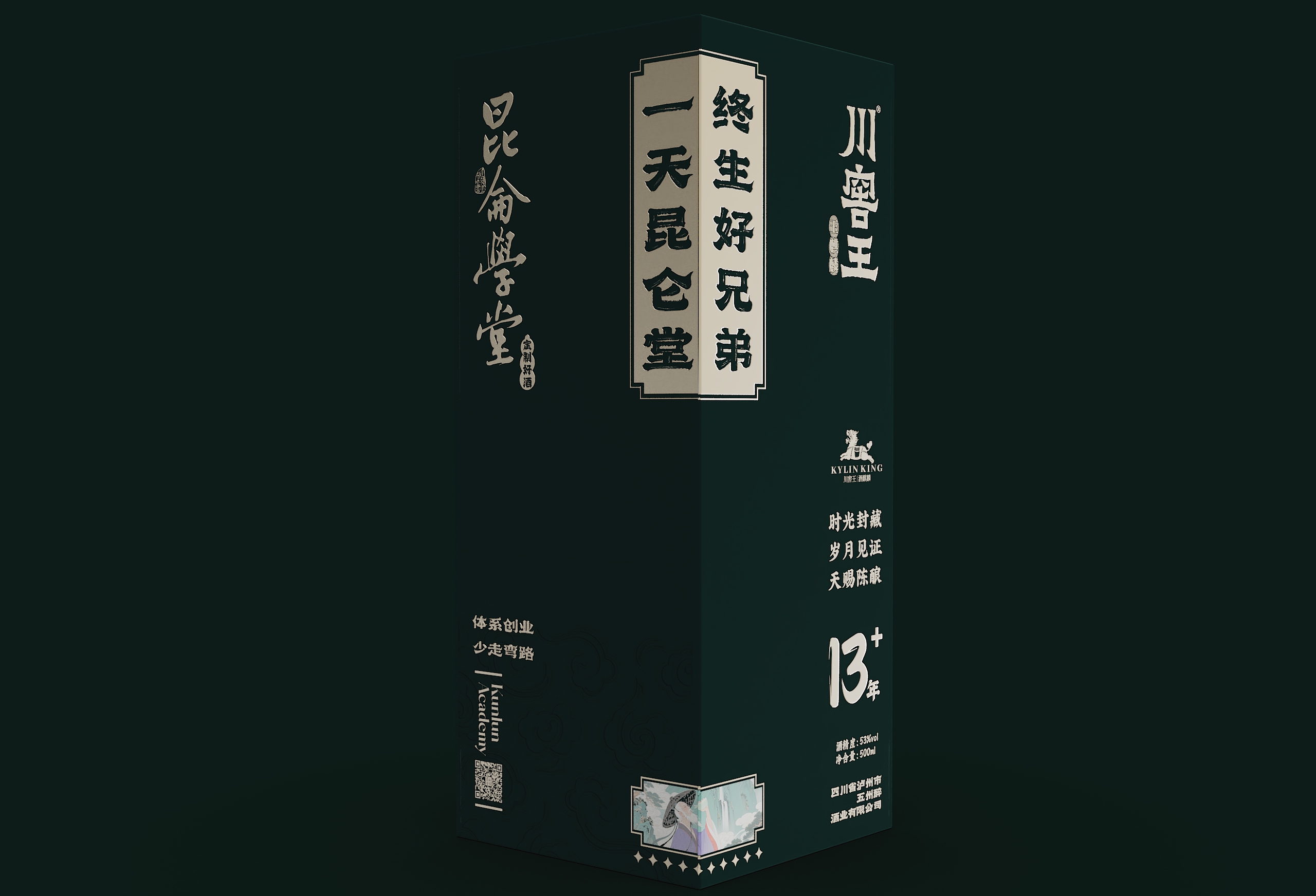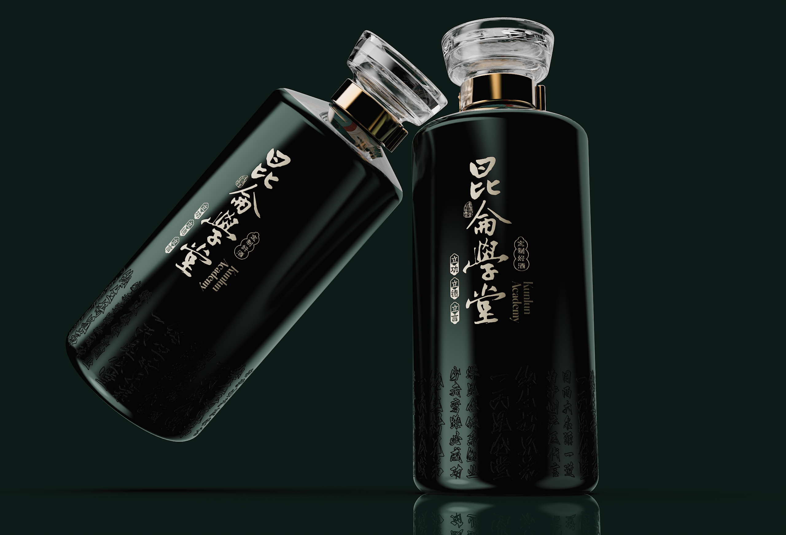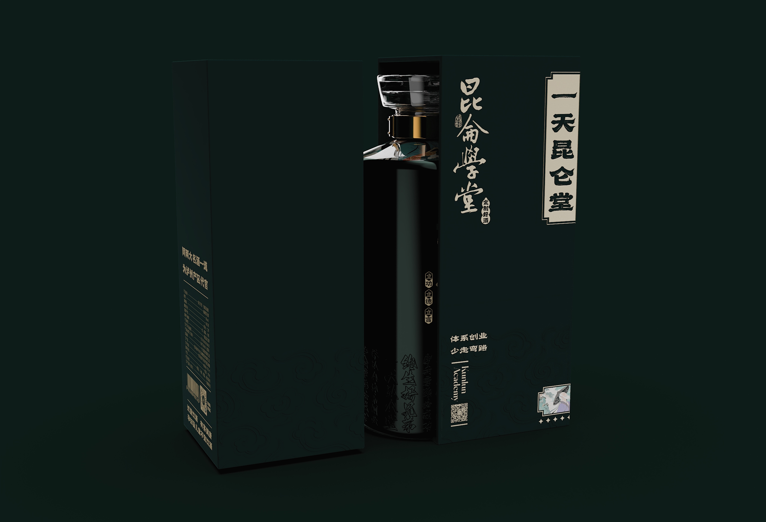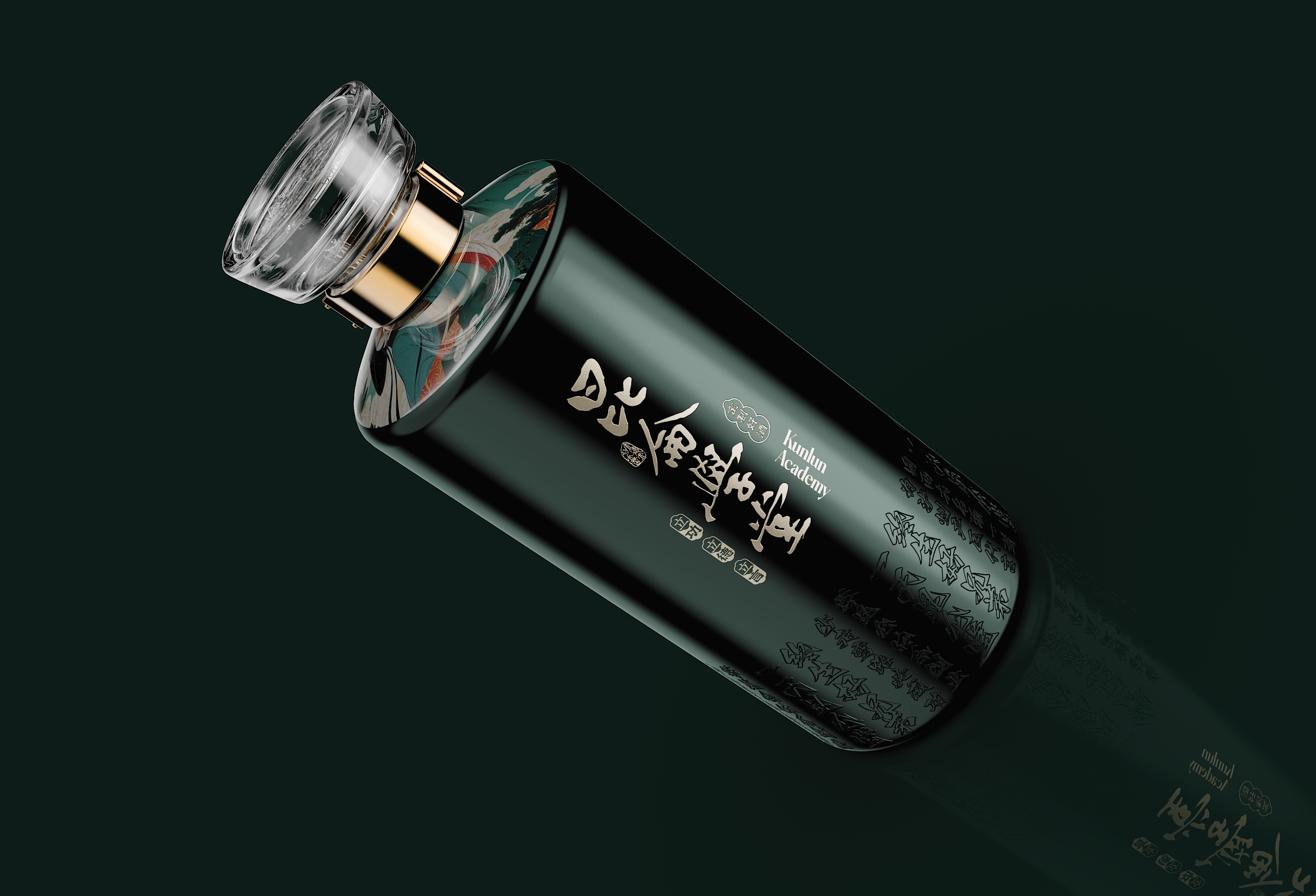 这款青瓶包装最终通过系统化的设计语言,完成了从“容器”到“礼器”的升华。当深青釉色与香槟金在光影中交织,当传统纹样与现代工艺在瓶身共鸣,它展现的不仅是包装设计的创新突破,更是中国文化在设计语境下的当代生命力。